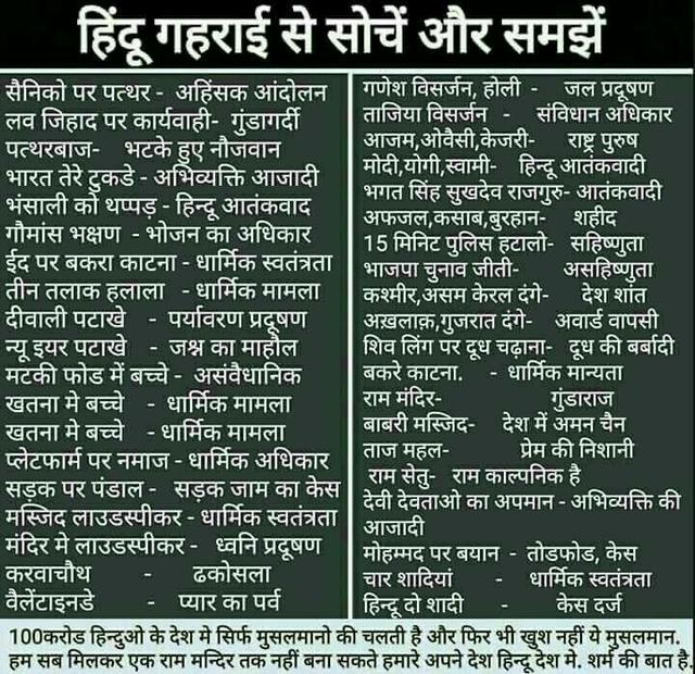 2014 में नरेन्द्र मोदी के प्रधानमंत्री बनने पर समस्त हिन्दुओं को चिन्तन करना चाहिए कि "इतने वर्षों में हमें क्या मिला?" गूढ़ मन्थन की भी जरुरत नहीं, बस पिछली सरकार के 10 वर्षों में हिन्दुओं पर लगाए जा रहे कलंक, उदाहरणार्थ : दीपावली के शुभावसर पर शंकराचार्य की गिरफ़्तारी, आसाराम की गिरफ़्तारी, झूठे आरोपों में इस्लामिक आतंकवाद को संरक्षण देते हुए साधु, संतों और साध्वियों की गिरफ़्तारी आदि आदि। और आसाराम को बलात्कार आरोप में गिरफ्तार करने के लिए पीड़ित के कमला मार्केट थाना, दिल्ली में रिपोर्ट लिखवाने से लगभग एक घंटे पहले मीडिया थाने पर मौजूद, किस साज़िश की ओर इशारा करती है? आज मोदी-मोदी चीखने वाली मीडिया ही इन काल्पनिक घटनाओं को बढ़ाचढ़ा कर खूब TRP बढ़ा रहे थे। उस समय किसी भी निर्भीक और खोजी पत्रकार कहे जाने वाले ने यह तक पूछने का साहस नहीं किया कि पीड़ित के आने से पूर्व कमला मार्केट थाने पर मीडिया का जमावड़ा क्यों? मुंबई 26/11 घटना के बाद "हिन्दू आतंकवाद" और "भगवा आतंकवाद" के नाम से हिन्दू समाज को कलंकित किया जा रहा था। लेकिन मोदी के प्रधानमंत्री बनने उपरान्त कहाँ है "हिन्दू आतंकवादी" और "भगवा आतंकी"?