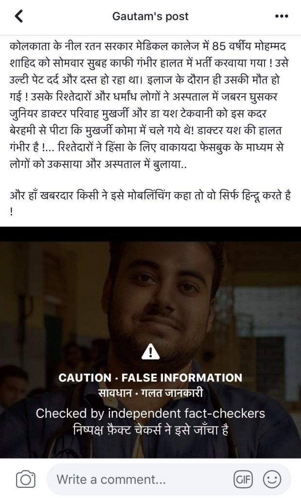 ख़ैर, अगर फेसबुक यहाँ अपना दोगलापन त्याग कर बात कर रहा होता तो हम मान लेते कि सच में ये लोग इस बात को लेकर संवेदनशील हैं, और इनकी AI (आर्टिफिशियल इंटेलिजेंस), मशीन लर्निंग तकनीकों से ऐसी तस्वीरों को फैलने से रोका जा सकता है। लेकिन ऐसी बात नहीं है। यही तस्वीर, और यही खबर दूसरे वेबसाइट के फेसबुक पेज पर देखी जा सकती है। वहाँ इन्होंने दो अलग-अलग खबरों में इस्तेमाल हुई तस्वीरों को रहने दिया, वो पोस्ट फेसबुक द्वारा डिलीट नहीं किए गए।