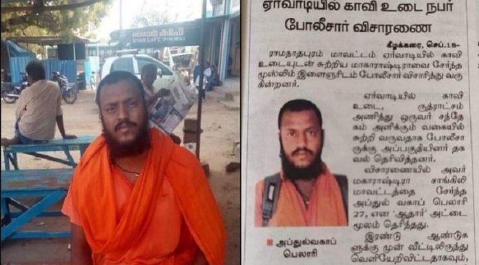 भगवा वस्त्र पहने महाराष्ट्र निवासी अब्दुल वहाब तमिलनाडु में पकड़ा गया