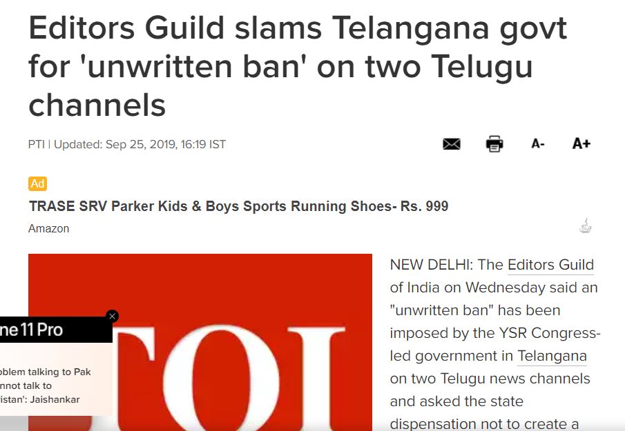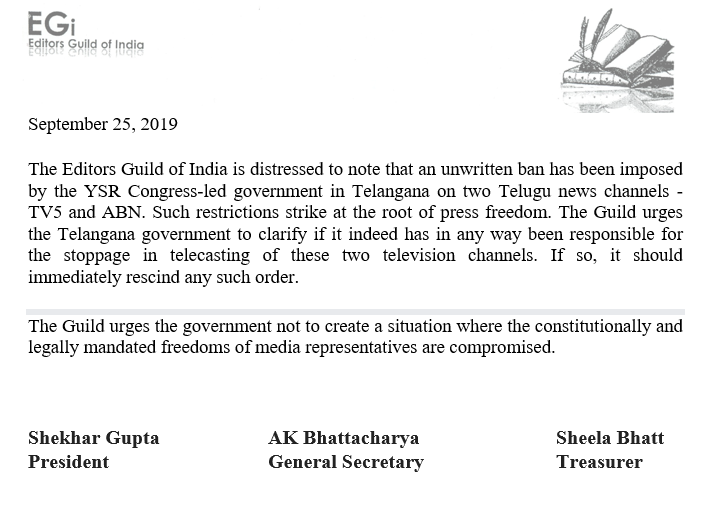 एडिटर्स गिल्ड ने अपने पत्र/बयान में आंध्र के मुख्यमंत्री जगन रेड्डी पर दो तेलुगु भाषी टीवी चैनलों TV5 और ABN पर अघोषित प्रतिबंध का आरोप लगाया था। माना जाता है कि दोनों चैनल राज्य सरकार सरकार की आलोचना करने वाले थे। एडिटर्स गिल्ड ने इसे प्रेस की आज़ादी के खिलाफ बताया और आंध्र प्रदेश सरकार से इस मामले पर स्पष्टीकरण की माँग की। उन्होंने पूछा कि क्या सरकार ने इन दोनों चैनलों के प्रसारण को रोकने वाला कोई आदेश दिया था, और अगर दिया था तो गिल्ड ने उसे हटाने की माँग की।यहाँ तक तो बात सही थी, लेकिन गिल्ड ने गड़बड़ यह कर दी कि मूल बयान में आंध्र की जगह तेलंगाना लिख दिया, और उसी का सीएम जगन को बनाकर आलोचना शुरू कर दी।